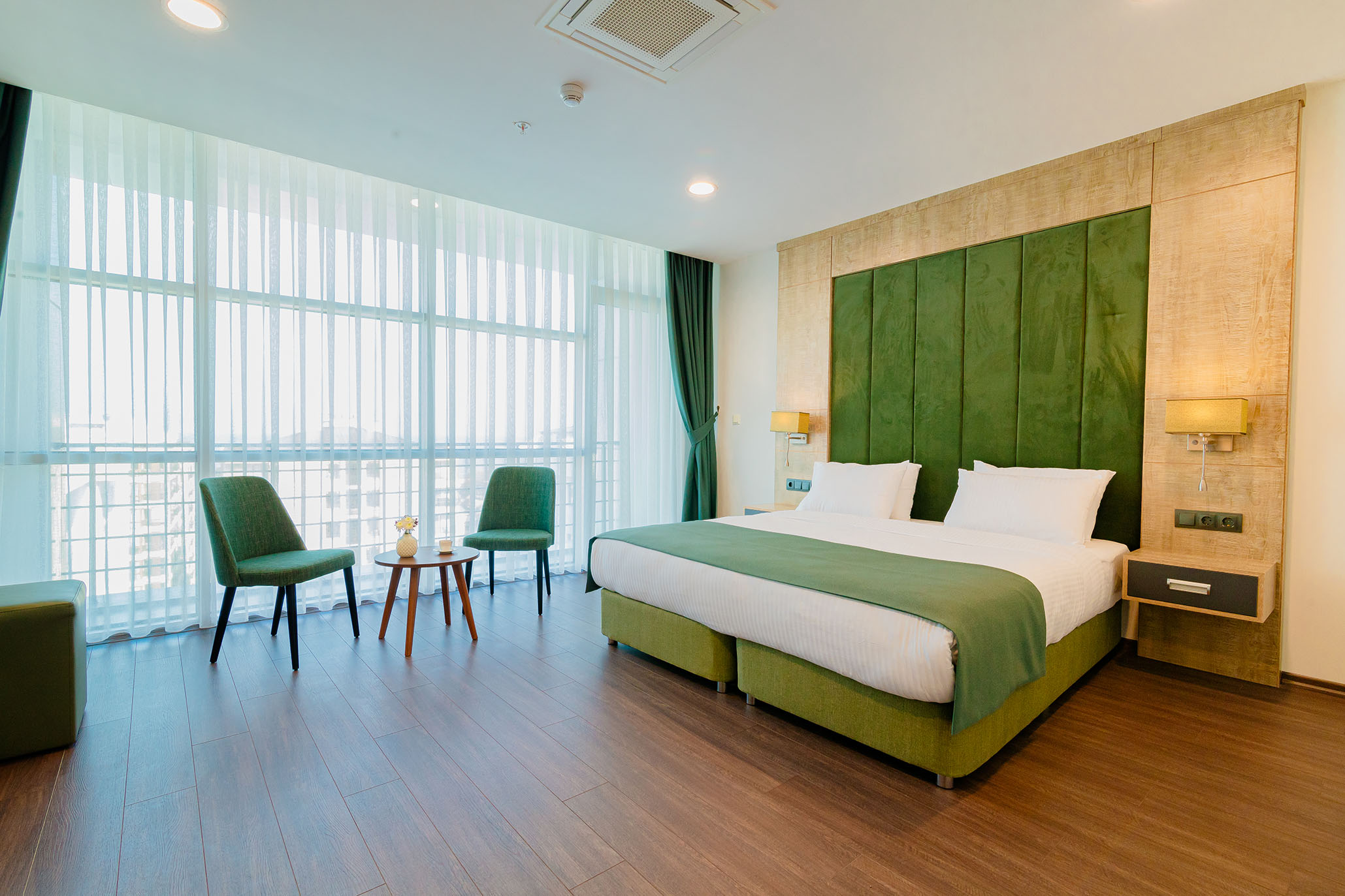 2 Yatak Odası, Akıllı TV, Wi-Fi, Mini Bar, Klima, Ütü, Ütü Masası, Kasa bulunmaktadır.